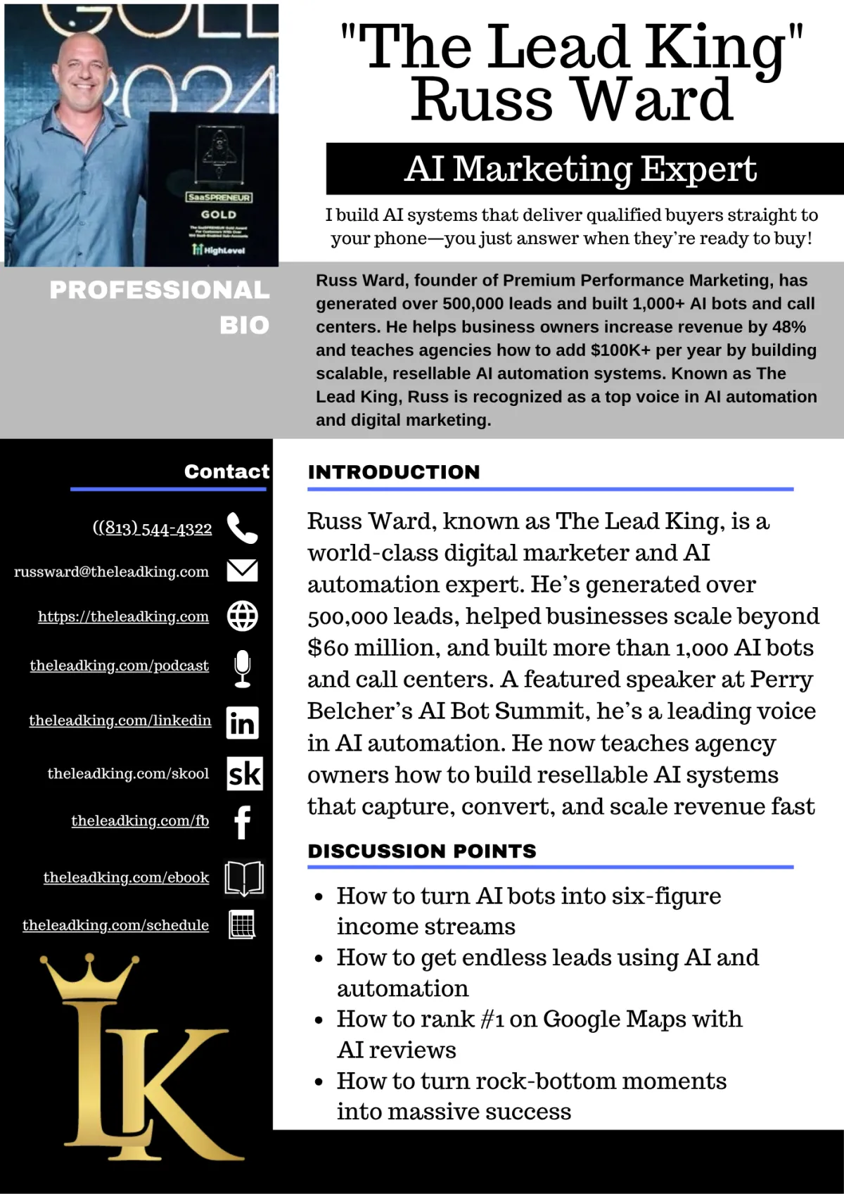 "If you're thinking about using Russ Ward, The Lead King, I suggest you do!"